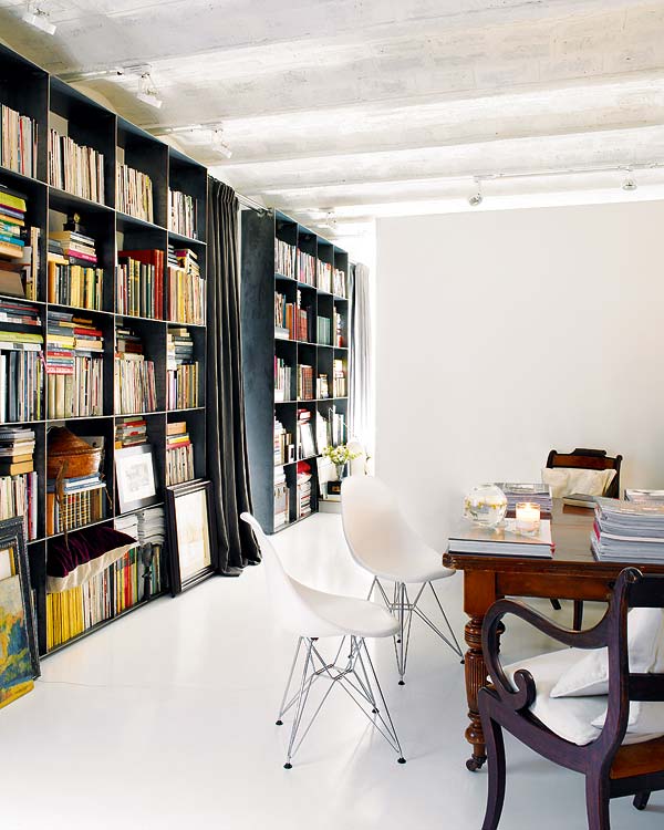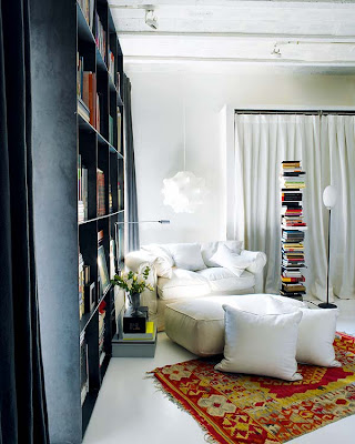 Recuerdo esta vivienda! Creo que salio en la revista nuevo estilo hará cosa de dos años justo cuando comenzaba a interesarme por la decoración y las antigüedades. Me quedé totalmente prendada de su zona de lectura y su inmensa librería, un sueño, me dije a mi misma que yo tendría algo similar algún día, me la guardo para tenerla mas presente ;) un beso