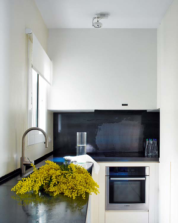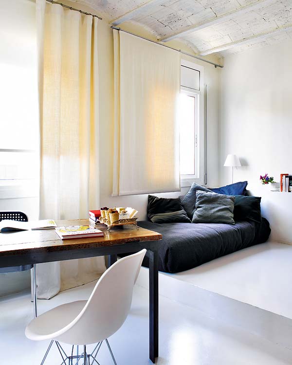 Derribó incluso el falso techo techo para dejar al descubierto las bobedillas catalanas que pintó para darle luminosidad a la vivienda.
