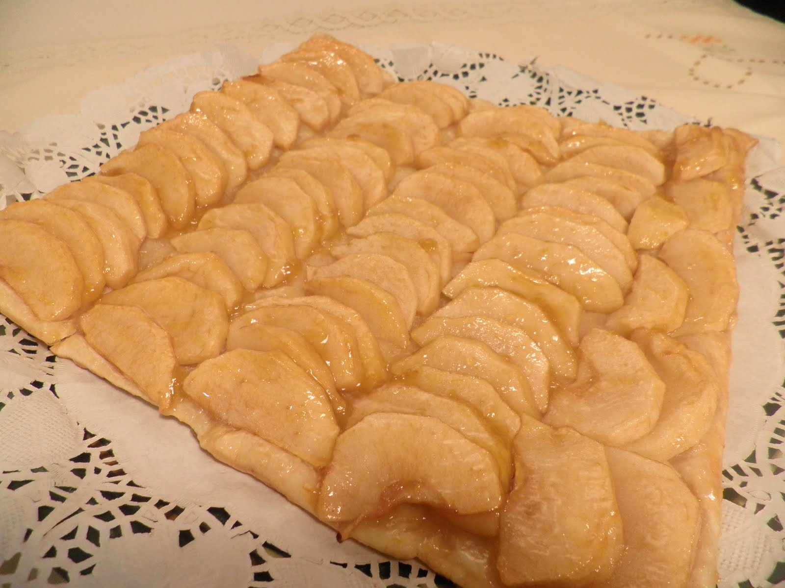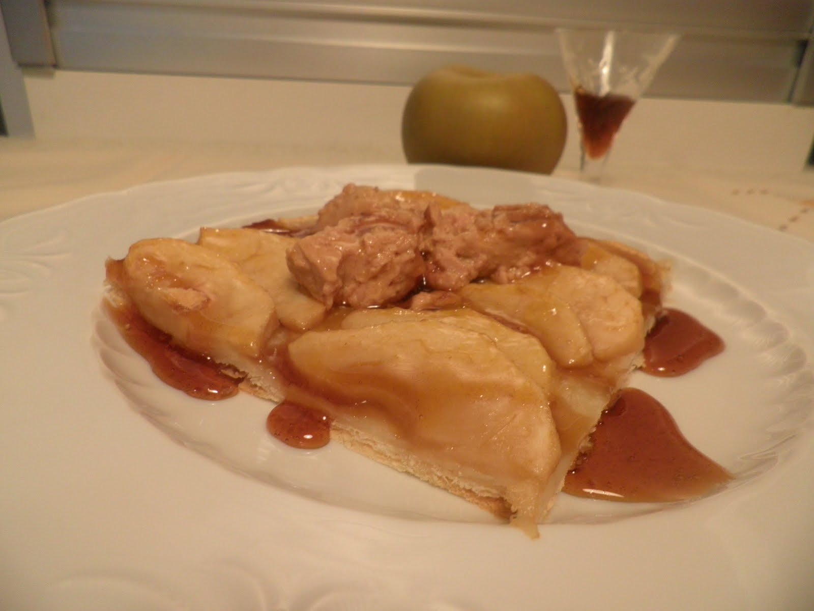 Gracias a Ingrid morethanchic , que es un encanto y que nos enseñó hace unos días lo que se puede hacer con hojaldre y manzanas morethanchic cosillas-que-puedes-hacer-con..., nos pusimos mi niña y yo manos a la obra e hicimos primero la tarta de manzana, para terminar con la receta tan rimbombante que nos propuso: "Coca de manzana con medallón de foie fresco de pato y reducción de Pedro Ximenez", ufff, cuesta más escribir el nombre que hacerlo.